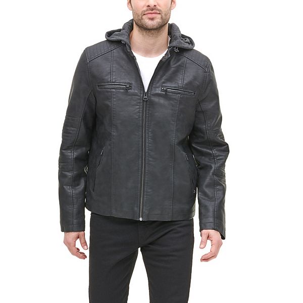 Levi S Men S Rugged Faux Leather Racer Jacket With Hood At Amazon Men S Clothing Store